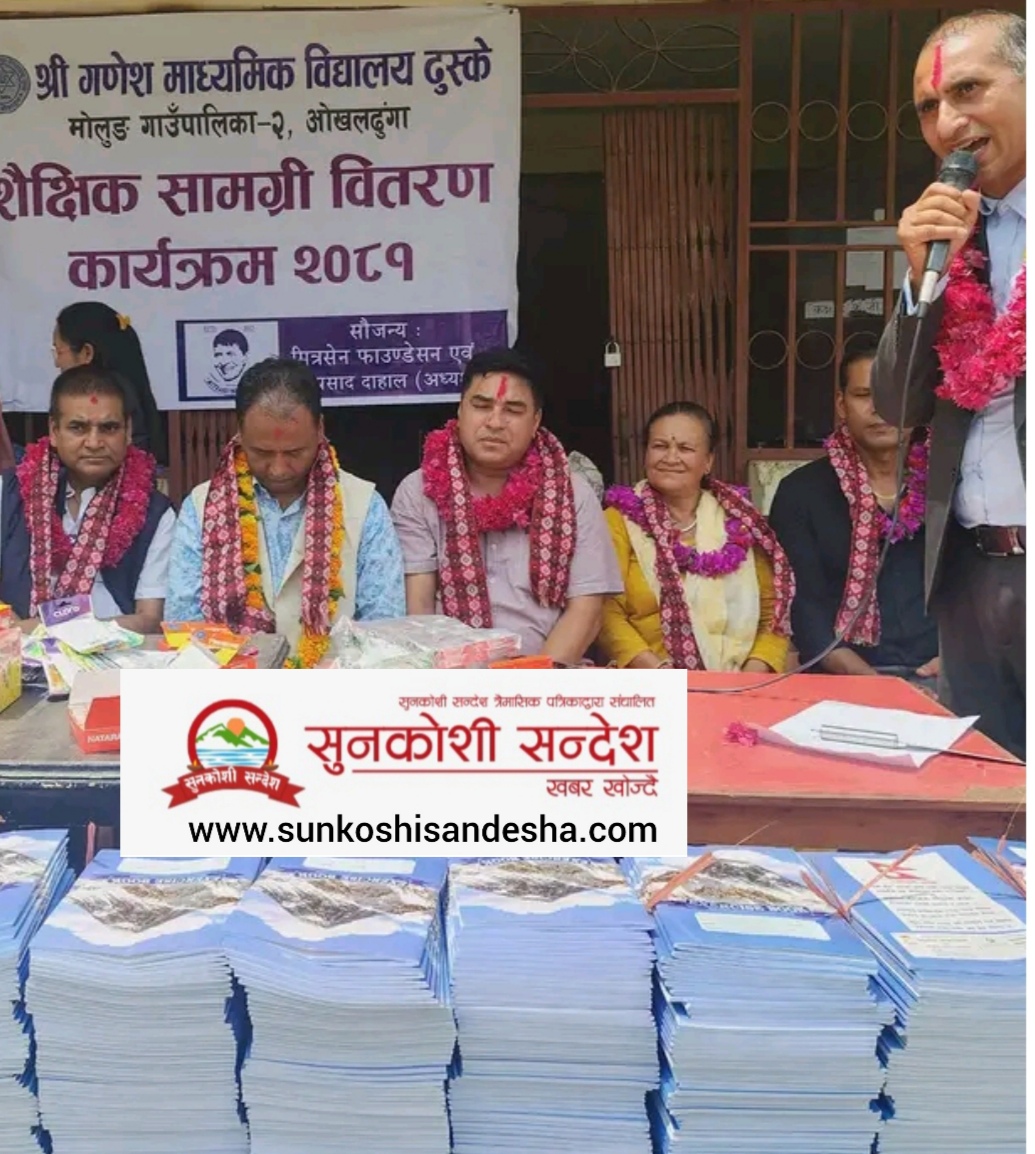 सुनकोशी गाउँपालिका ओखलढुंगाको सुनकोशी माबिमा खड्काद्वारा शैक्षिक सामाग्री बितरण !