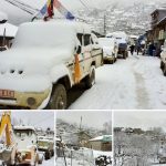 हुम्लाको सदरमुकाममा रोकेर राखेका सवारी साधन हिउँले ढाकेको दृश्य